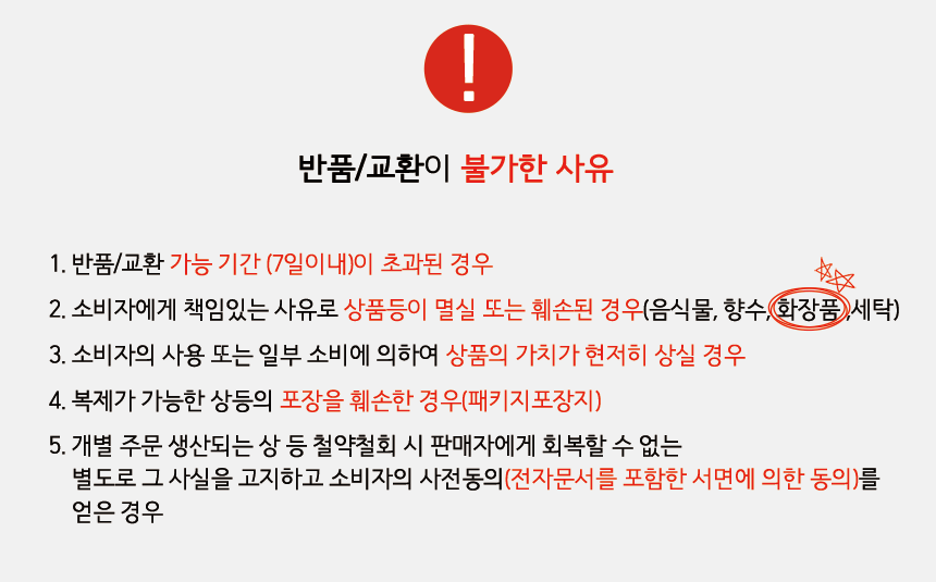 단, 아래의 경우에는 반품 및 교환을 할 수 없습니다.